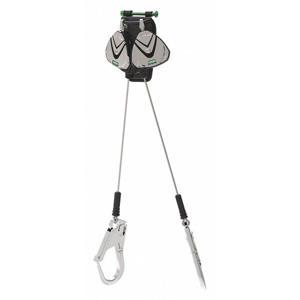 Leading-Edge Self-Retracting Lifeline, Sealed No, Anchoring Location Overhead or Foot Level, ANSI SRL Type SRL-LE, Anchorage End Connection Material Aluminum, Anchorage End Connection Type Snap Hook, Harness End Connection Quick Connect, Harness End Connection Material Aluminum, Lifeline Length 8 ft, Lifeline Material Galvanized Steel Cable, Number of Legs 2, RFID Equipped No, Weight Capacity 310 lb, Series V-EDGE(TM), Rebar Hook Gate Opening Size 2-1/2 In., Color Gray/Black