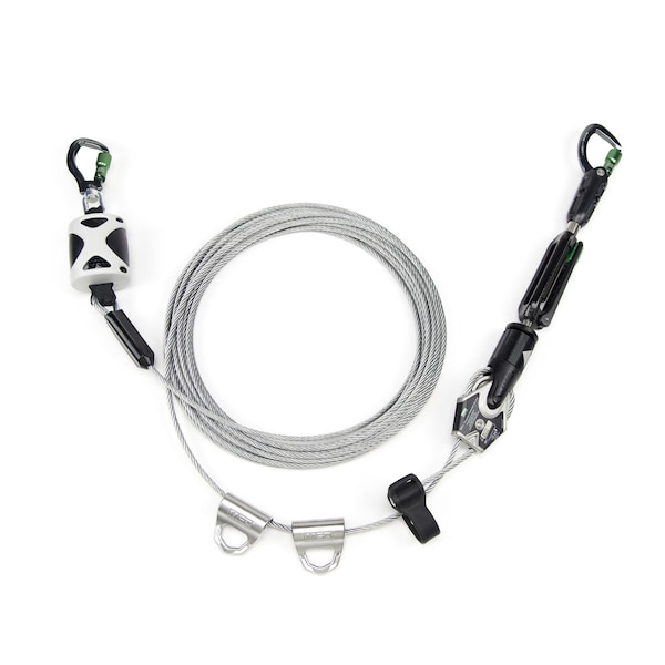 Horizontal Lifeline, Lifeline Installation Temporary, Horizontal Lifeline Component Horizontal Lifeline, Standards OSHA 1926.502, OSHA 29 CFR 1910.140, Weight Capacity 310 lb, Workers per System 2, Compatible Attachment Points Lifeline, Lifeline Length 60 ft, Lifeline Material Steel, Mounting Type Tie-Off, Hardware Material Steel, PTFE, Stainless Steel, Mounting Location Anchorage Point, For Use With Temporary Horizontal Lifeline, Includes Bypass Shuttles, Add-On Style Single Span
