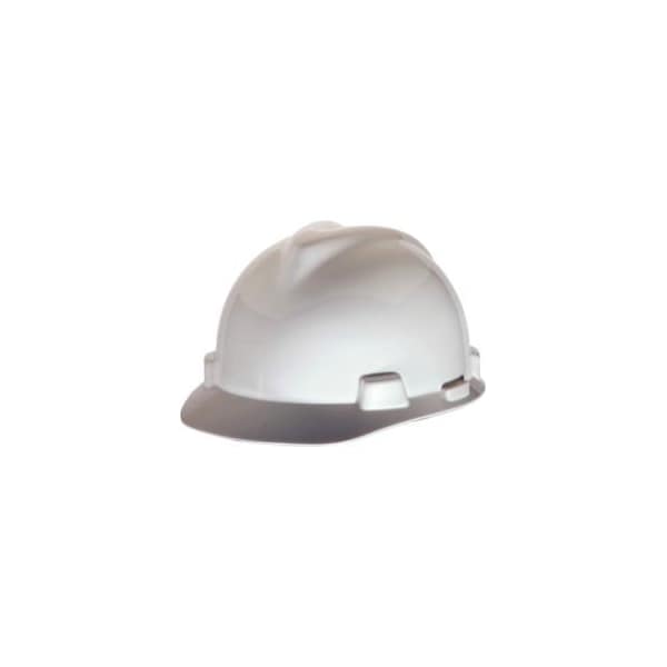 MSA V-GARD® HARD HATS, FRONT BRIM, STAZ-ON® PIN-LOCK SUSPENSION, WHITE, 463942 THE MSA V-GARD ® CAP, WITH ITS DISTINCTIVE TRADEMARK "V" DESIGN, IS A WORLD RECOGNIZED BRAND KNOWN FOR COMFORT, QUALITY, AND DURABILITY. WHEN YOU WANT THE BEST COMFORT, QUALITY AND DURABILITY WORN BY MILLIONS ACROSS THE GLOBE, YOU NEED TO BUY THE ORIGINAL MSA V-GARD HELMET, SETTLE FOR NOTHING LESS. POLYETHYLENE SHELL PROVIDES SUPERIOR IMPACT PROTECTION. FAS-TRAC® SUSPENSION. SELF-ADJUSTING CROWN STRAPS ENSURE A COMFORTABLE FIT.