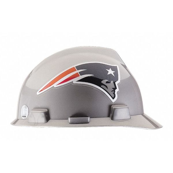 NFL Hard Hat, ANSI Classification Type 1, Class E, Head Protection Style Front Brim, Head Protection Suspension Type One-Touch (4-Point), Head Protection Color Gray, Head Protection Graphics New England Patriots, Fits Hat Size 6-1/2 to 8, Head Protection Material Polyethylene, Accessory Mounting Options Side-Slots, Head Protection Venting No, High-Visibility No, Standards ANSI/ISEA Z89.1-2014, CSA Z94.1-2005 Class E, Series V-Gard
