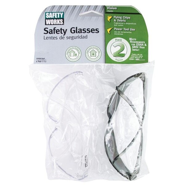 SAFETY WORKS Safety Glasses, Lens Color ClearGray, Frame Type Rimless, Includes 2 Safety Glasses
