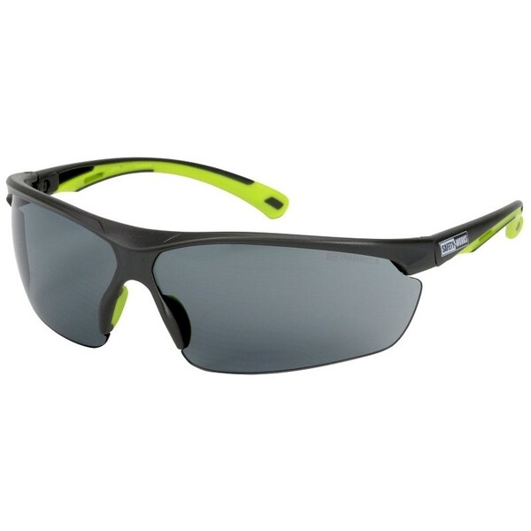 SAFETY WORKS Safety Glasses, Lens Coating AntiFog, Lens Color Gray, Frame Type AngleAdjustable, SemiRimless, Frame Color GrayGreen, Temple Material Rubber