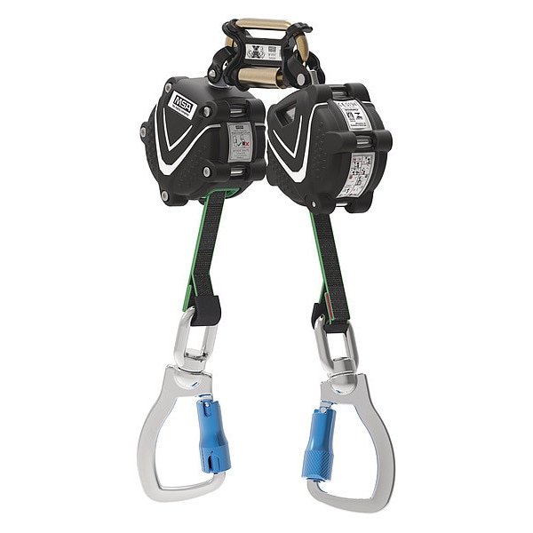 Self-Retracting Lifeline, Sealed No, Anchoring Location Overhead Only, ANSI SRL Class (2014) Class B, ANSI SRL Type SRL-P, Anchorage End Connection Material Stainless Steel, Anchorage End Connection Type Carabiner, Harness End Connection Carabiner, Harness End Connection Material Aluminum, Lifeline Length 6 ft, Lifeline Material HPPE, Number of Legs 2, RFID Equipped No, Weight Capacity 310 lb, Series V-SHOCK(TM), Color Black, Lifeline Diameter 1/4 in, Minimum Weight Capacity 130 lb