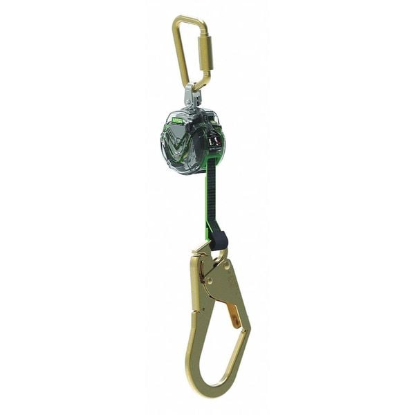 Self-Retracting Lifeline, Sealed No, Anchoring Location Overhead Only, ANSI SRL Type SRL, Anchorage End Connection Material Stainless Steel, Anchorage End Connection Type Snap Hook, Harness End Connection Carabiner, Harness End Connection Material Stainless Steel, Lifeline Length 6 ft, Lifeline Material Nylon Webbing, Number of Legs 1, RFID Equipped No, Weight Capacity 310 lb, Series V-TEC(TM), Rebar Hook Gate Opening Size 2-1/2 In., Color Clear/Green/Black, Lifeline Width 1/16 In.