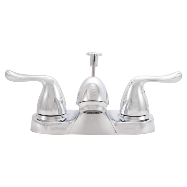 Sleek polished chrome and chic curved handles make this 4-ch centerset 2-handle Low-Arc Bathroom Faucet a must-have when it comes to the bathroom A matching ABS Plastic pop-up drain is easy to stallin. And a washerless cartridge helps prevent drippgin. The faucet offers a 1in. 2 GPM rate to reduce water usagein.