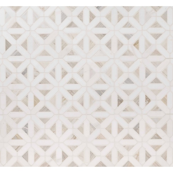 Accentuate your home with the elegance of this MSI 12 in. x 12 in. Angora Geometric Pattern tile. it features white warm beiges tones framed by cool whites, adding visual interest to any interior space. this stylish marble tile is the perfect choice for updating your kitchen backsplash, bath wall, countertop surface or feature wall. durable and with mesh backing for easy installation, these mini-tiles are designed for both residential and commercial use. inspect all tiles before installation. natural stone products inherently lack uniformity and are subject to variation in color, shade, finish, etc. it is recommended to blend tiles from different boxes when installing. natural stones may be characterized by dry seams and pits that are often filled. the filling can work its way out and it may be necessary to refill these voids as part of a normal maintenance procedure. all natural stone products should be sealed with a penetrating sealer. after installation, vendor disclaims any liabilities.
