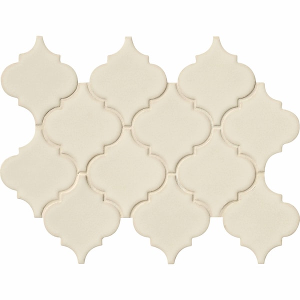 Easily install these handsome Antique White ceramic mosaic wall tiles in your home to produce an attractive design. they measure and feature arabesque patterns. just peel them from the mesh sheet to install. these tiles have an antiquated white shade for a vintage look. place them in your kitchen, bathroom or on the exterior of any residential or commercial area.