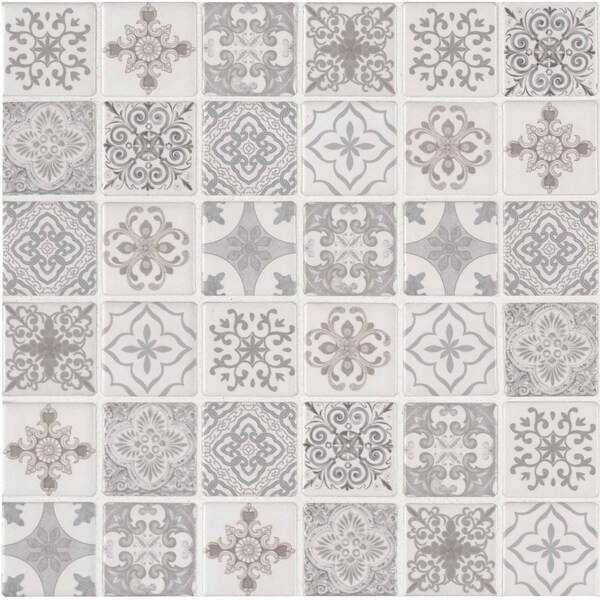 Refresh the look of your home and add classic style with these MSI Anya Blanco porcelain mosaic tiles. they feature gray and white hues with flowers and geometric patterns that are perfect for showers, backsplashes, accent walls or countertops. these in. by in. tiles are crafted of glazed ceramic on mesh-backed sheets for a professional-looking, easy installation.