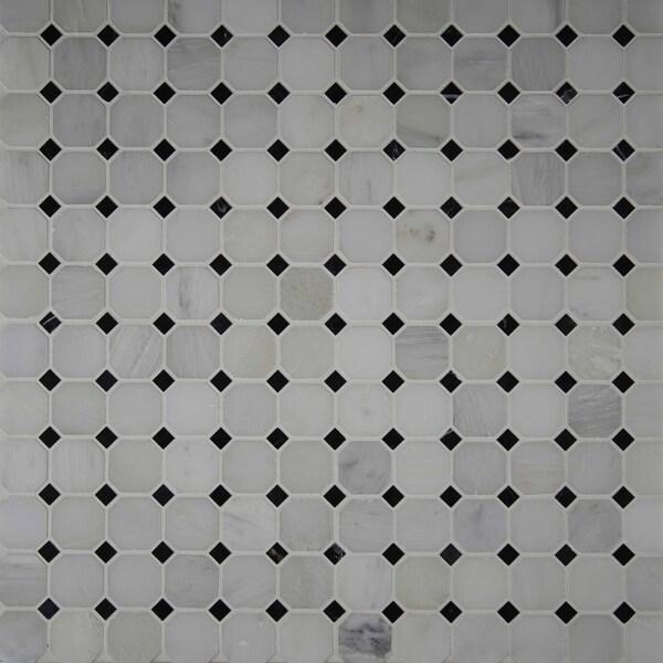 Arabescato Carrara 2" X 2" Octagon And Dot Marble Mosaic Tile, 10PK