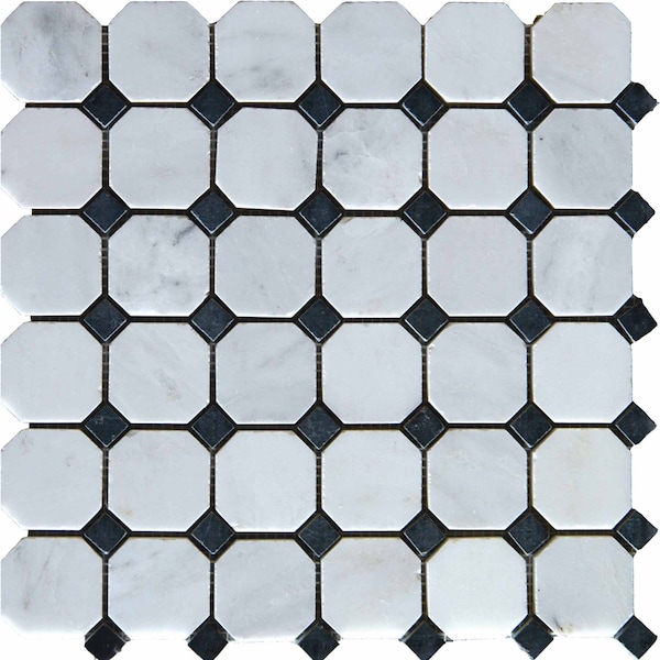 The Arabescato Carrara octagon honed marble mesh-mounted mosaic tile from MSI is crafted from natural stone marble that evokes an aesthetic of classical romance. its smooth, polished surface and soft white tones will upgrade any room of your home in timeless style. with a large selection of sizes and accessories to choose from, greecian white can easily be laid in a pattern or single layout and this particular marble is suitable for residential and commercial installations, including kitchens and bathrooms. note: please inspect all tiles before installation. natural stone products inherently lack uniformity and are subject to variation in color, shade, finish, etc. it is recommended to blend tiles from different boxes when installing. natural stones may be characterized by dry seams and pits that are often filled. the filling can work its way out and it may be necessary to refill these voids as part of a normal maintenance procedure. all natural stone products should be sealed with a penetrating sealer. after installation, vendor disclaims any liabilities.