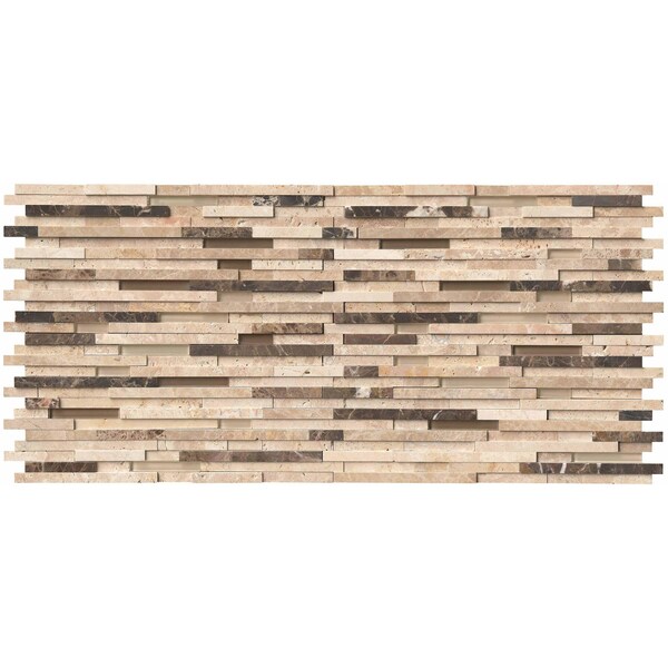 Add a splash of modern styling to your decor with Ashlar Rock Interlocking mosaic tile. a seemingly random blend of neutral brown/beige glass and stone pieces forms this 8 in. x 18 in. mesh-mounted tile, infusing your space with a dimensional look and a contemporary ambience. the mixed-sheen, mixed-finish tiles from MSI will invigorate any residential or commercial setting and are versatile enough to be used outside or on a fireplace surround. the variable-thickness bricks within each tile look particularly enchanting as kitchen backsplash or bath wall, and display stunningly on a feature wall.