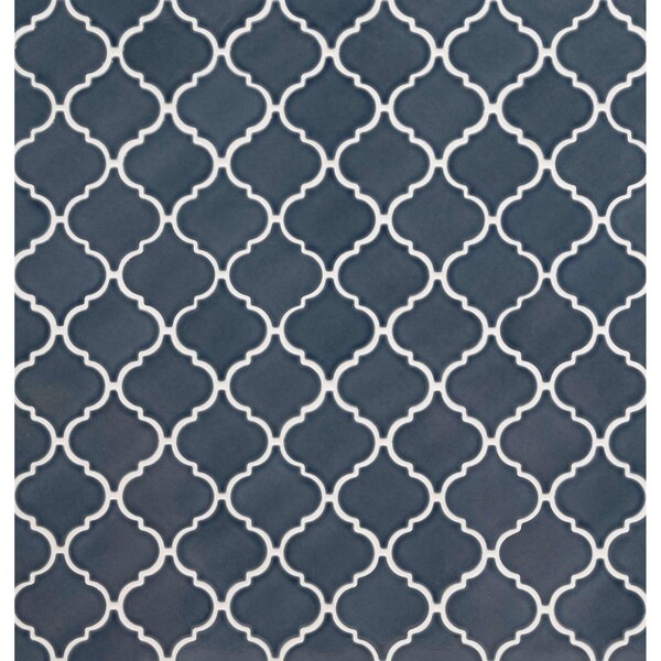 Bay Blue 8mm Glossy Mesh-Mounted Arabesque Tile, 10PK (Discontinued)