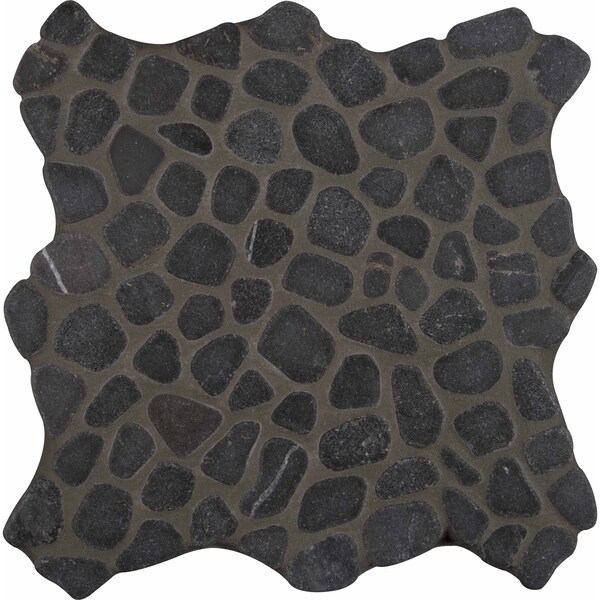 Black Pebbles SAMPLE Tumbled Marble Mesh-Mounted Mosaic Tile