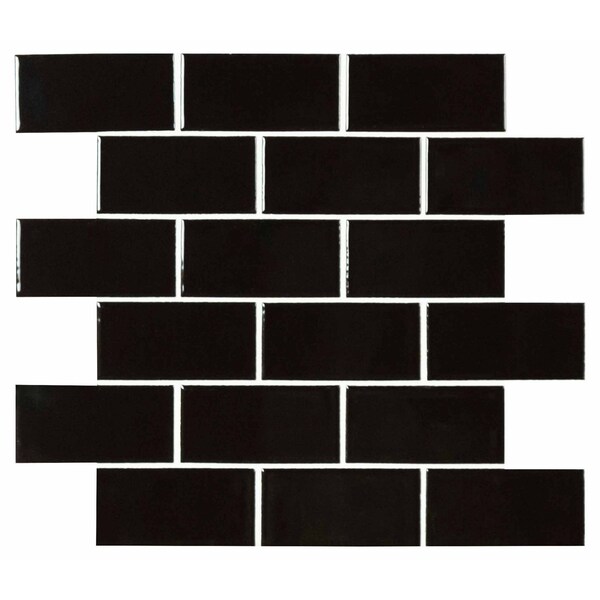 Black SAMPLE Glossy Porcelain Mesh-Mounted Mosaic Tile (Discontinued)