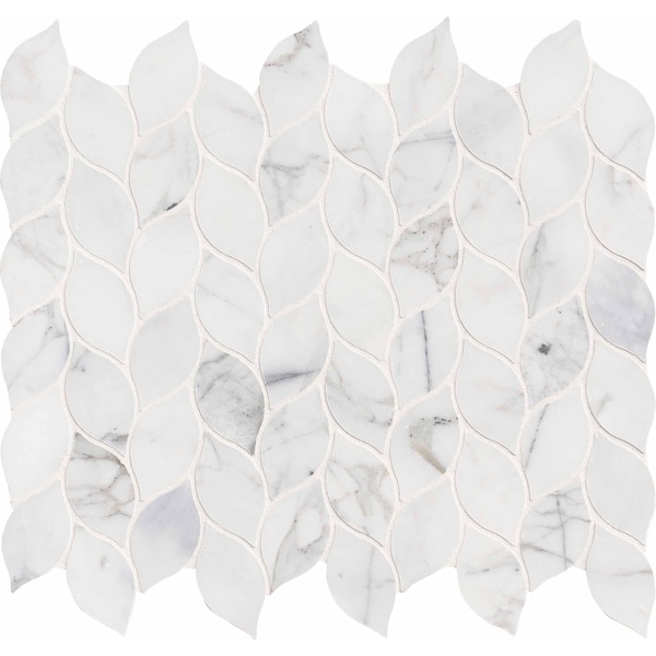 With its smooth polished finish and high sheen, this Calcutta Blanco polished marble mesh-mounted mosaic tile is the perfect addition to your indoor or outdoor decor. the grade natural marble can be used on floors, walls or countertops. each case comes with note: inspect all tiles before installation. natural stone products inherently lack uniformity and are subject to variation in color, shade, finish etc. it is recommended to blend tiles from different boxes when installing. natural stones may be characterized by dry seams and pits that are often filled. the filling can work its way out and it may be necessary to refill these voids as part of a normal maintenance procedure. all natural stone products should be sealed with a penetrating sealer.