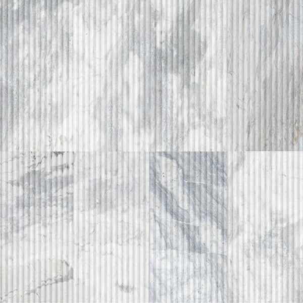 Capri Blue Milano Ribbo marble infuses your space with refined elegance through its tiles, showcasing light gray marble veined with gray, blue, and gold. The honed finish elevates its sophisticated appearance, while the concave, inverted fluted design introduces unique depth and texture. Ideal for enhancing walls, including fireplace facades, accent walls, backsplashes, and more, this marble tile seamlessly combines timeless beauty with modern flair.