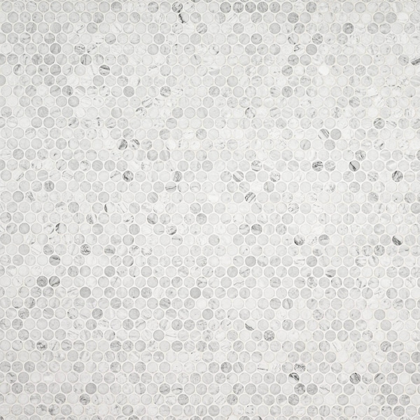 These iconic Carrara White Round Honed marble tiles create a stunning design perfect for contemporary walls, backsplashes, shower surrounds, and even residential floors. With a sophisticated honed pattern featuring a beautiful mix of white and gray tones, these penny rounds offer an on-trend and decorative style to help spruce up a variety of environments, both inside and out. Make this easy-to-install mesh-backed tile more dramatic with matching or contrasting grout colors. From a kitchen accent wall to the master bath, this marble tile is durable, easy to clean and low maintenance, making it an ideal choice for busy homes and commercial spaces.