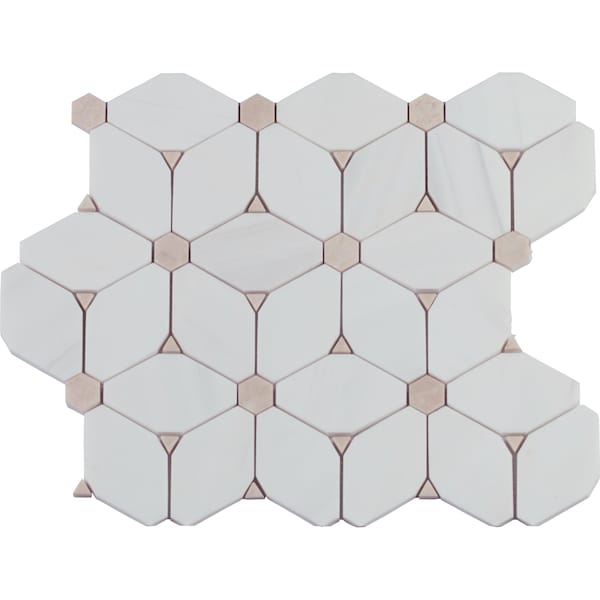 Add a splash of sophistication to your decor with Cecily Polished Marble Mosaic Floor and Wall Tile. It features unique styled pieces of polished white Italian marble, lending an upscale look and contemporary flair to any interior expanse. The high-sheen, smooth-finished genuine stone chips are perfectly arranged on a 0. mesh-backed mosaic. Suitable for residential and commercial use, this ornate tile has a distinct pattern that is certain to inject space-defining allure into any setting. Note: Inspect all tiles before installation. Natural stone products inherently lack uniformity and are subject to variation in color, shade, finish, etc. It is recommended to blend tiles from different boxes when installing. Natural stones may be characterized by dry seams and pits that are often filled. The filling can work its way out and it may be necessary to refill these voids as part of a normal maintenance procedure. All natural stone products should be sealed with a penetrating sealer.