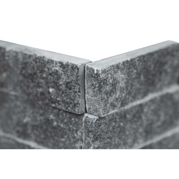 MSI’s Cosmic Black Spliface "L" Corner Ledger Panel 6 in. x 18 in. Stacked Stone Panel features creamy black tones which evoke a sense of sophistication and style. Crafted from genuine marble with a splitface finish, these leger panels create stunning accent walls, backsplashes, fireplace surrounds, and more indoors and outdoors the choice is yours and the possibilities are endless. With an exclusive Interlocking Z Feature, these stacked stone panels fit together easily just like puzzle pieces to help you achieve a professional finish. Whether you prefer traditional dcor or something more contemporary, Cosmic Black Spliface "L" Corner Ledger Panel will enhance your residential or commercial space for years to come. Note: Inspect all tiles before installation. Natural stone products inherently lack uniformity and are subject to variation in color, shade, finish etc. It is recommended to blend tiles from different boxes when installing. Natural stones may be characterized by dry seams and pits that are often filled. The filling can work its way out and it may be necessary to refill these voids as part of a normal maintenance procedure. All natural stone products should be sealed with a penetrating sealer.