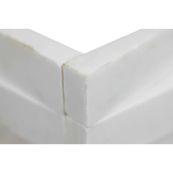 MSI’s 6 in. x 18 in. Cosmic White "L" Corner 3D Wave Ledger Panel features tone white accented by smooth, clean lines for unmistakable modern elegance, indoors and out. It's intriguing 3D look and gorgeous honed finish create visual interest without overpowering. Smaller than traditional stacked stones, these marble mini corner panels are designed to work with MSI’s Cosmic White "L" Corner 3D Wave Ledger Panels, which are perfectly sized to fit a standard backsplash no cutting required. They're also a contemporary choice for finishing off mini stacked stone accent walls, fireplace surrounds, water features, and barbeque surrounds. Mini stacked stone corner panels and stacked stone panels fit together quickly and easily for seamless alignment and grout isn't necessary. Give your space a fresh new look and a touch of natural beauty with this premium corner panel. Note: Inspect all tiles before installation. Natural stone products inherently lack uniformity and are subject to variation in color, shade, finish etc. It is recommended to blend tiles from different boxes when installing. Natural stones may be characterized by dry seams and pits that are often filled. The filling can work its way out and it may be necessary to refill these voids as part of a normal maintenance procedure. All natural stone products should be sealed with a penetrating sealer.