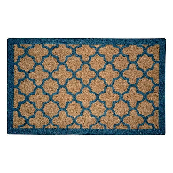 Geometric patterns are ! incorporate this 18 X 30 coir mat on your door step if you are Looking for a pop of color The quatrefoil pattern is applied the ever popular classic blue. printed coir door mats add style at your door step while the hard working coir bristles keep your floor clean Keeping this mat a sheltered area will maximize its durability Consider layering this mat a coordinating rubber tray for added design flair or on top of a decorative mat to make it match different seasons This geometric mat will dress up any stylish space