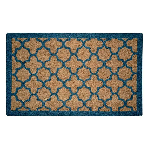 Geometric patterns are ! incorporate this 22 X 36 coir mat on your door step if you are Looking for a pop of color The quatrefoil pattern is applied the ever popular classic blue. printed coir door mats add style at your door step while the hard working coir bristles keep your floor clean Keeping this mat a sheltered area will maximize its durability Consider layering this mat a coordinating rubber tray for added design flair or on top of a decorative mat to make it match different seasons This geometric mat will dress up any stylish space