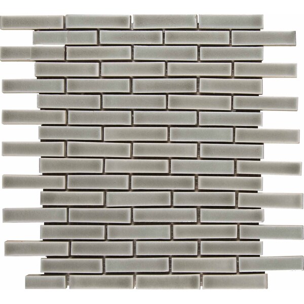 With the MSI Dove Gray ceramic mosaic wall tile, it's easy to add a splash of contemporary styling to your decor. this attractive tile features 5/ in. x -/ in. strips of ceramic arranged in a brick pattern on a mesh sheet that makes installation a much easier process. trendy gray shades featuring a crackled look, this glossy ceramic creates a distinct pattern for various install projects in bathrooms, kitchens and other residential or commercial spaces.