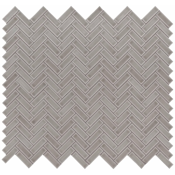 Dove Gray Herringbone SAMPLE Glossy Ceramic Mesh-Mounted Mosaic Tile (Discontinued)