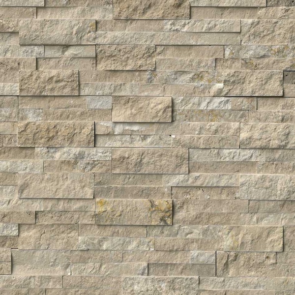 Durango Cream 6 in. x 24 in. Ledger Panel is crafted from travertine and features a myriad of light beige hues that give it timeless appeal. Its split face finish creates a pleasing texture that complements traditional decor as well as contemporary and trendy styles. Use this stone inside your home to create a stacked stone backsplash or accent wall that you'll never tire of or outdoors to beautify your hardscaping projects. However you choose to use this durable and attractive stone you'll enjoy a streamlined installation process. MSI’s Interlocking Z Feature helps join the pieces together and enhances their naturally random appearance. Note: Inspect all tiles before installation. Natural stone products inherently lack uniformity and are subject to variation in color, shade, finish, etc. It is recommended to blend tiles from different boxes when installing. Natural stones may be characterized by dry seams and pits that are often filled. The filling can work its way out and it may be necessary to refill these voids as part of a normal maintenance procedure. All natural stone products should be sealed with a penetrating sealer.