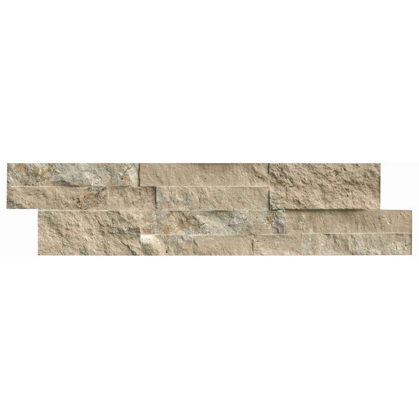 Durango Cream Ledger Panel is crafted from travertine and features a myriad of light beige hues that give it timeless appeal. Its split face finish creates a pleasing texture that complements traditional decor as well as contemporary and trendy styles. Use this stone inside your home to create a stacked stone backsplash or accent wall that you'll never tire of or outdoors to beautify your hardscaping projects. However you choose to use this durable and attractive stone you'll enjoy a streamlined installation process. MSI’s Interlocking Z Feature helps join the pieces together and enhances their naturally random appearance. Note: Inspect all tiles before installation. Natural stone products inherently lack uniformity and are subject to variation in color, shade, finish, etc. It is recommended to blend tiles from different boxes when installing. Natural stones may be characterized by dry seams and pits that are often filled. The filling can work its way out and it may be necessary to refill these voids as part of a normal maintenance procedure. All natural stone products should be sealed with a penetrating sealer.