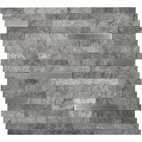 Add a distinctive look to your walls or countertops with this MSI Eclipse Interlocking mesh-mounted mosaic wall tile. made from grade metal and stone, the tile has a distinctive gray split face marble with silver metal strips. it's perfect for walls, showers and tubs, fireplace facades and bar backsplashes. this stylish tile is rated for indoor commercial and residential use.