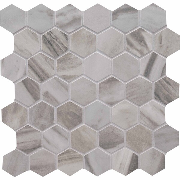 This MSI’s Eden Bardiglio matte hexagon porcelain mesh-mounted mosaic tile comes in 0. sections for ease of installation and offers a lovely marble look with stunning whites that delivers class and graceful style in durable porcelain. this tile features in. hexagon chips on a mesh-mounted mosaic sheet with a smooth finish and can be used for whole floors or wall sections or trimmed to provide a striking accent as desired. use the tile in various areas around the home for medium-duty flooring such as in kitchens, hallways or even outside around terraces or balconies. the slipesistant design is recommended for indoor use.
