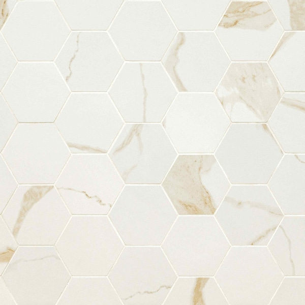 Eden Calacatta Sample. Matte Porcelain Hexagon Floor & Wall Tile