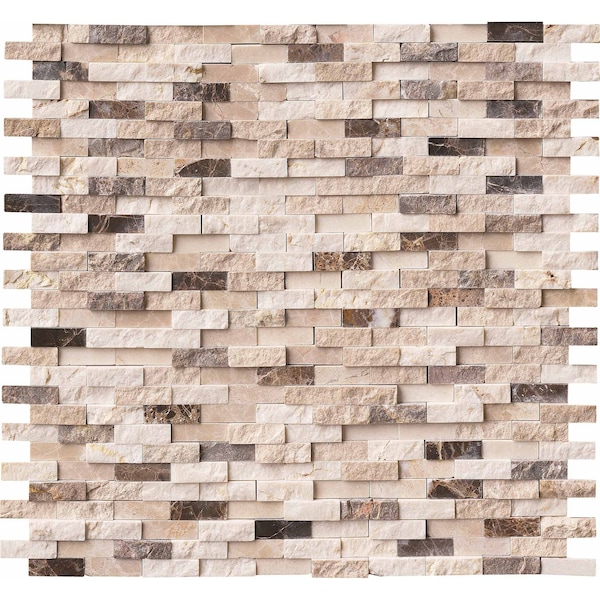 Use the MSI's Emperador Blend Split Face mosaic wall tile for your next installation or renovation project to incorporate a contemporary aesthetic into your decor. this attractive tile features a seemingly random arrangement of tile strips on a mesh sheet that makes installation a much easier process. a neutral blend of tan and brown tones create a stylish complement for a wide variety of design schemes. this tile is constructed from durable marble material and is ideal for a variety of wall applications. note: inspect all tiles before installation. natural stone products inherently lack uniformity and are subject to variation in color, shade, finish, etc. it is recommended to blend tiles from different boxes when installing. natural stones may be characterized by dry seams and pits that are often filled. the filling can work its way out and it may be necessary to refill these voids as part of a normal maintenance procedure. all natural stone products should be sealed with a penetrating sealer.