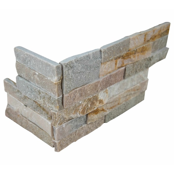 MSI’s Golden Honey Corner Panel features a warm, neutral mix of creams, golds, and grays for unparalleled design versatility. Featuring multiple sized rectangular stones in varying thicknesses, this quartzite corner panel adds interest and dimension to any space. Understatedly elegant, they’re perfect for finishing off backsplashes, feature walls, fireplaces surrounds, and more. Also frost resistant, this lovely neutral hued corner panel can be used outdoors to give any number of residential or commercial stacked stone projects a designer look.