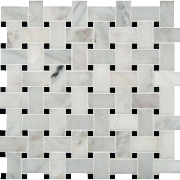 Greecian White Basketweave SAMPLE Polished Marble Mesh-Mounted Mosaic Tile