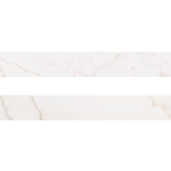MSI's Kaya collection Calacatta Lucca bullnose Tile is an exquisite porcelain tile that echoes the look of fine Italian marble with a bright white background and bold gray veining throughout This bullnose tile pairs perfectly with coordinating Kaya floor and wall tiles for a designer look and maximum impact Use it to put the finishing touch on a variety of design projects in both residential and commercial settings In the kitchen, bath, living room or commercial space, this bullnose tile sets your space apart from the rest
