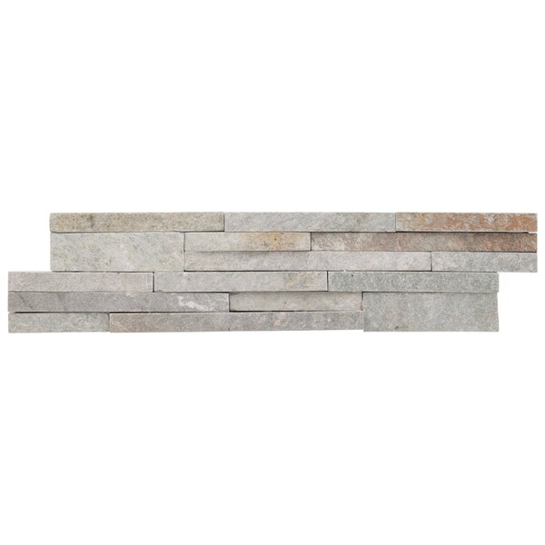 MSI’s Malibu Honey Ledger Panel Splitface Stacked Stone panel is crafted from stunning quartzite. Featuring various sized pieces in cool grays and warm creams with touches of gold, this sophisticated panel is revered for its versatility. Residential or commercial, use it to create stunning accent walls, backsplashes, or fireplace surrounds — indoors or outdoors. The choice is yours and the possibilities are endless! This frost-resistant product is also a designer top-pick for cladding architectural features and facades. With an exclusive Interlocking Z Feature that helps ensure a seamless finish, these stacked stone panels fit together easily, just like puzzle pieces. Choose New Golden Honey stacked stone panels to add instant interest and depth to any vertical space.