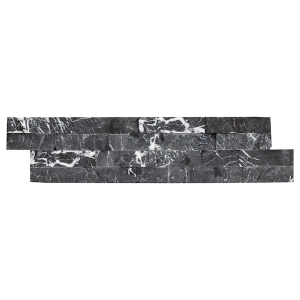 MSI’s Marquina Nero Splitface Ledger Panel Stacked Stone Panel features black tones which evoke a sense of sophistication and style. Crafted from genuine marble with a splitface finish, these leger panels create stunning accent walls, backsplashes, fireplace surrounds, and more indoors and outdoors the choice is yours and the possibilities are endless. With an exclusive Interlocking Z Feature, these stacked stone panels fit together easily just like puzzle pieces to help you achieve a professional finish. Whether you prefer traditional dcor or something more contemporary, Marquina Nero Stacked Stone Ledger Panels will enhance your residential or commercial space for years to come. Note: Inspect all tiles before installation. Natural stone products inherently lack uniformity and are subject to variation in color, shade, finish etc. It is recommended to blend tiles from different boxes when installing. Natural stones may be characterized by dry seams and pits that are often filled. The filling can work its way out and it may be necessary to refill these voids as part of a normal maintenance procedure. All natural stone products should be sealed with a penetrating sealer.