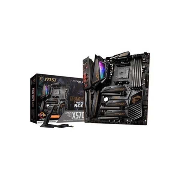 MSI MEG X570 ACE AM4 ATX Motherboard. 4 DIMMS. 3 M.2 onboard. RGB LED. WIFI. 5 Gigabit LAN.
