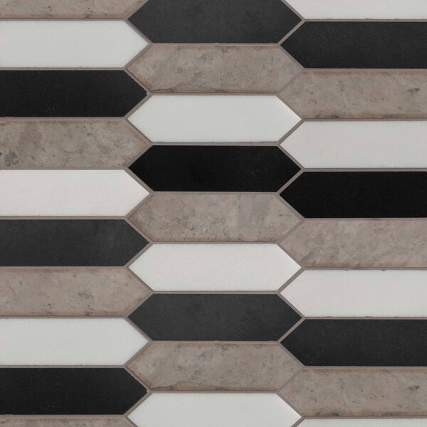 MSI Metropolitan Picket honed marble mosaic features a mesh-mounted sheet of multicolor marble in a herringbone pattern. any decor is enhanced by this chic mosaic. this enamoring mosaic can be use on the wall to create magnificent designs. note: inspect all tiles before installation. natural stone products inherently lack uniformity and are subject to variation in color, shade, finish etc. it is recommended to blend tiles from different boxes when installing. natural stones may be characterized by dry seams and pits that are often filled. the filling can work its way out and it may be necessary to refill these voids as part of a normal maintenance procedure. all natural stone products should be sealed with a penetrating sealer.