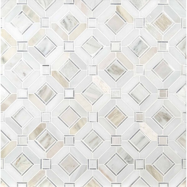 Milano Silver Pattern features cool neutral-toned stone shapes accented with silver hues to create an intricate kaleidoscopic motif. pickets, squares, and rectangles are arranged in a distinct pattern adding interest and range to any space. these durable tiles are suitable for several applications, from countertops to backsplashes to bathroom walls. Milano Silver Pattern is greenguard indoor air quality certified, easy to install, and offers a professional finish.