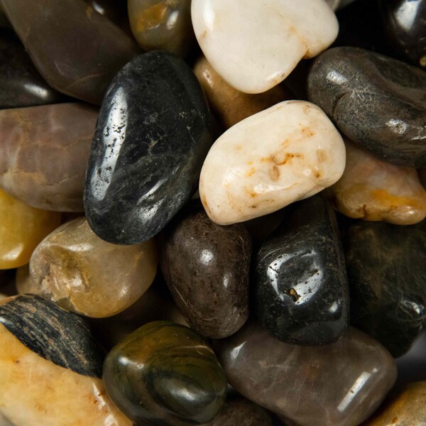 MSI's Marble Mixed Super Polished Pebbles 20 lbs. bag contains elegant Mixed Colored marble pebbles that lend a fine decorative touch to various installs. Ideal for use as an addition to your landscape, these pebbles protect the soil from temperature extremes, restrain the growth of weeds and also lend a natural look to your garden. The pebbles are ideal for use near areas that are prone to washouts like under downspouts and may be used at front entrances to add a professional look.