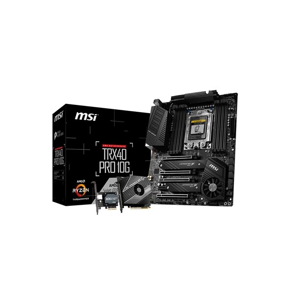 MSI TRX40 PRO 10G. ATX Motherboard. AX WIFI. 8 DIMMs Quad memory channel. Dual LAN & 10G LAN add on card. PCIe 4.0.