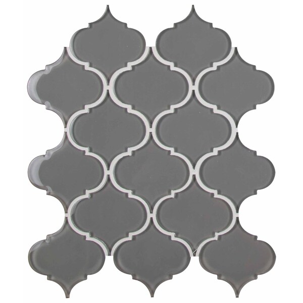 With the MSI Pebble Arabesque glass mosaic wall tile, this graceful, elegant and sophisticated glass tile features a classic, yet on-trend graphic pattern in a soothing neutral gray hue. this attractive tile features arabesque patterned pieces of glass arranged on a . in. x 0. in. mesh sheet that makes installation a much easier process. these mosaic tiles are suggested for a variety of interior projects including for use as kitchen backsplash tile, shower surrounds and other features throughout the property.