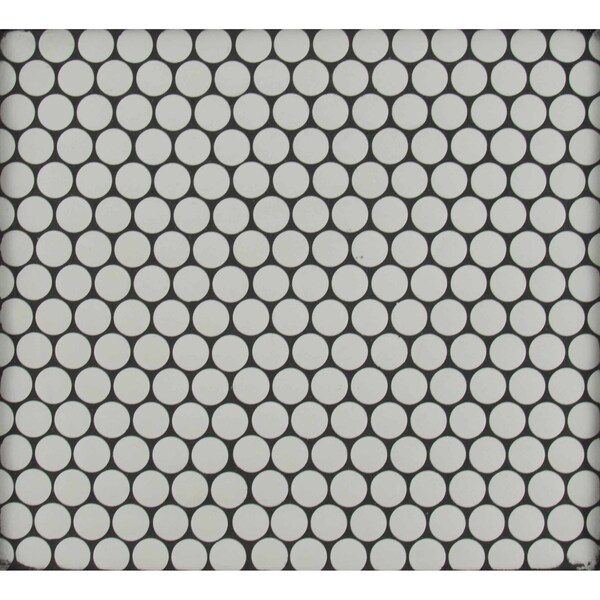 MSI’s Penny Round Bianco porcelain mosaic tiles are retro with a refreshing modern edge. their timeless shape and elegant white color make them exceedingly versatile - complementing traditional to contemporary design styles. pair them with large format porcelain tiles for a style-savvy cohesive look or use them alone to add detail and interest to residential floors, walls, counters or backsplashes. the choice is yours and the possibilities are endless. incredibly durable and easy to care for, this low sheen tile is also recommended for some light commercial and heavy commercial applications, including walls and backsplash. tiles are prearranged on mesh-backed sheets for simplified installation.