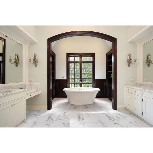 MSI’s Pietra Statuario Bullnose porcelain tile features a background of elegant white shades accented in a natural stone pattern. offering the luxurious look of marble in a uniquely sized polished tile, onyx statuario is traditional and contemporary all at once. it's popular with homeowners, designers and builders because it harmonizes sublimely with diverse design aesthetics and it's suitable for many residential applications, including walls, backsplashes and shower surrounds. this stone look tile can also be used in some light-duty commercial applications. this is a rectified tile, mechanically finished on all sides to achieve uniformity. its precise sizing allows for a thinner grout joint, which results in a clean, professional install and reduces staining issues. multiple tile sizes, along with coordinating decorative mosaics give your project a finished look.