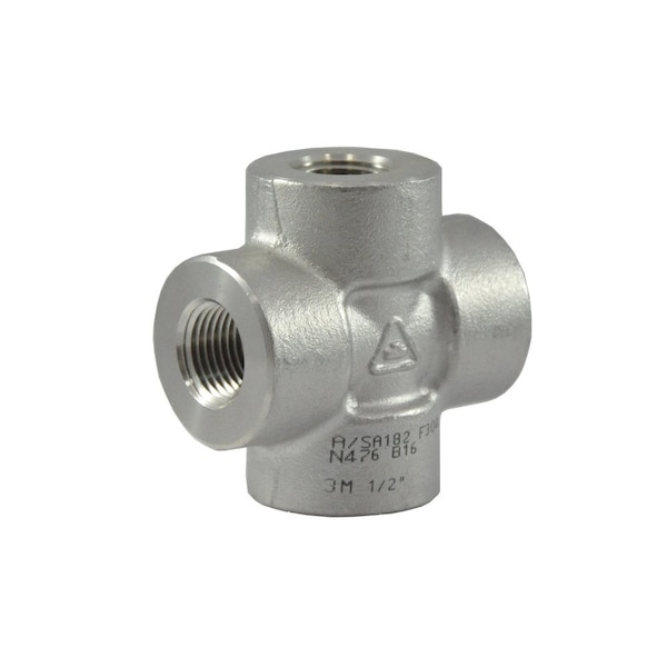 INDUSTRIAL 3000lb 304 Stainless Steel Forged Fittings - CrossesOur INDUSTRIAL 3000lb 304 Stainless Steel Forged Fittings - Crosses are meticulously engineered to meet the high demands of industrial applications. Designed for durability, precision, and reliability, these fittings perform exceptionally well in even the toughest environments.Key Features:Industrial Strength: These crosses feature a robust design, making them ideal for industrial use. They are built to withstand high-pressure environments, ensuring suitability for a wide range of applications.Standards Compliance: Our stainless steel fittings conform to ASTM/ASME A182/SA182, and the threads conform to ANSI B1.20.1.Mercury-Free: All our stainless forged fittings are guaranteed to be mercury-free, ensuring safety and compliance with industry standards.Manufacturing Quality: Produced in an ISO 9001:2000 certified facility, ensuring adherence to stringent quality standards.Pressure Tested: Each fitting is pressure tested to ensure integrity and performance under high-pressure conditions.Traceability: Each fitting includes full LOT code traceability for quality assurance, allowing you to track each product throughout its manufacturing process.Material Test Reports: We provide Material Test Reports MTRs on demand, offering detailed insights into the material properties and quality of the fittings to meet your project requirements and compliance needs.Fast Shipping: We offer same next-day shipping, ensuring timely delivery and uninterrupted operations.Description:Our INDUSTRIAL 3000lb 304 Stainless Steel Forged Fittings - Crosses are crafted from high-quality 304 stainless steel for exceptional durability and performance. These fittings are designed to connect four sections of piping securely, providing a reliable and leak-proof connection. The robust design ensures a secure connection, minimizing turbulence and flow resistance, which is crucial for maintaining system efficiency and longevity.Our fittings comply with industry standards and specifications, ensuring they meet or exceed the requirements for industrial use. Whether setting up a new system or maintaining an existing one, these crosses provide the reliability and performance you need.Applications:These stainless steel crosses are widely used in various industrial applications, including Chemical Processing, Oil & Gas Pipelines, Power Plants, Water Treatment Facilities, and Industrial Manufacturing.Invest in our IN