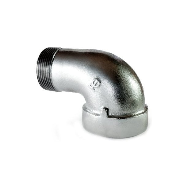 INDUSTRIAL 300lb Galvanized Iron Fittings - 90 Degree Street ElbowsOur INDUSTRIAL 300lb Galvanized Iron Fittings - 90 Degree Street Elbows are meticulously engineered to meet the high demands of industrial applications. Designed for durability, precision, and reliability, these fittings perform exceptionally well in even the toughest environments.Key Features:Industrial Strength: These 90 degree street elbows feature a robust design, making them ideal for industrial use. They are built to withstand high-pressure environments, ensuring suitability for a wide range of applications.Standards Compliance: Our galvanized iron fittings conform to ASME B16.3 dimensions, ASTM A197 material standards, and the threads conform to ASME B1.20.1.Galvanized Coating: The fittings are hot-dip galvanized in accordance with ASTM A153, providing excellent corrosion resistance and durability.Manufacturing Quality: Produced in an ISO 9001:2000 certified facility, ensuring adherence to stringent quality standards.Pressure Tested: Each fitting is pressure tested to ensure integrity and performance under high-pressure conditions.Traceability: Each fitting includes full LOT code traceability for quality assurance, allowing you to track each product throughout its manufacturing process.Material Test Reports: We provide Material Test Reports MTRs on demand, offering detailed insights into the material properties and quality of the fittings to meet your project requirements and compliance needs.Fast Shipping: We offer same next-day shipping, ensuring timely delivery and uninterrupted operations.Description:Our INDUSTRIAL 300lb Galvanized Iron Fittings - 90 Degree Street Elbows are crafted from high-quality galvanized iron for exceptional durability and performance. These fittings are designed to change the direction of piping systems at a 90-degree angle, with one male and one female end, providing a secure and reliable connection. The robust design ensures a secure connection, minimizing turbulence and flow resistance, which is crucial for maintaining system efficiency and longevity.Our fittings comply with industry standards and specifications, ensuring they meet or exceed the requirements for industrial use. Whether setting up a new system or maintaining an existing one, these 90 degree street elbows provide the reliability and performance you need.Applications:These galvanized iron 90 degree street elbows are widely used in various industrial applications, in