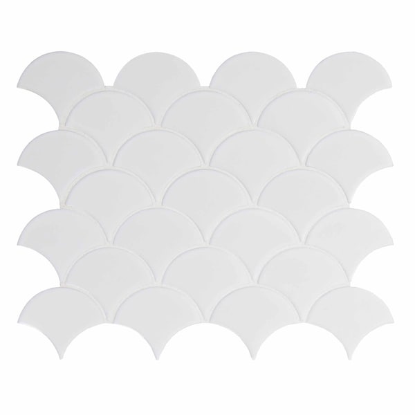 MSI’s Retro Scallop Bianco porcelain tile offers a soft, neutral look that complements nearly any design scheme. its charming trendy pattern and glossy finish create visual interest without overpowering; its a perfect choice for updating kitchens and baths. a welcomed addition to both homes and light use commercial spaces, use it as wall tile, bathroom or kitchen backsplash tile, or on floors or countertops. mix and match white glossy fish scale tiles with other tiles from the MSI’s domino collection for easy to achieve designer looks. these tiles are mounted on mesh-backed sheets for simplified installation and a professional finish.